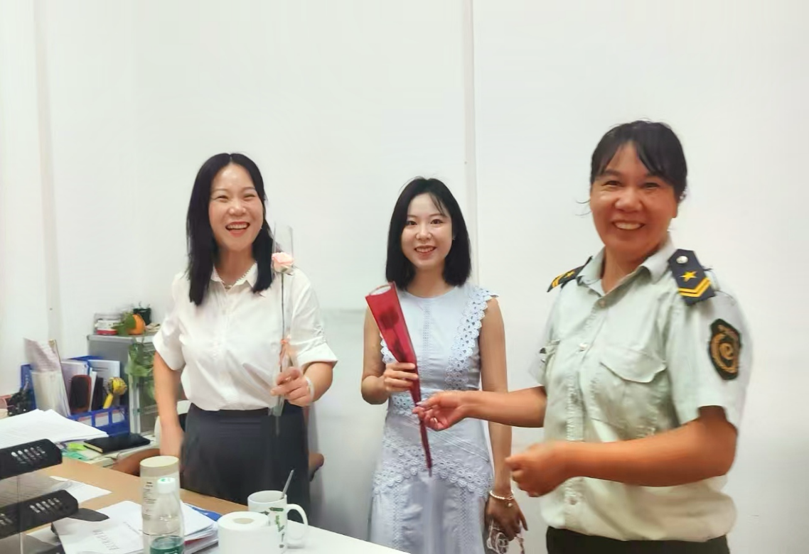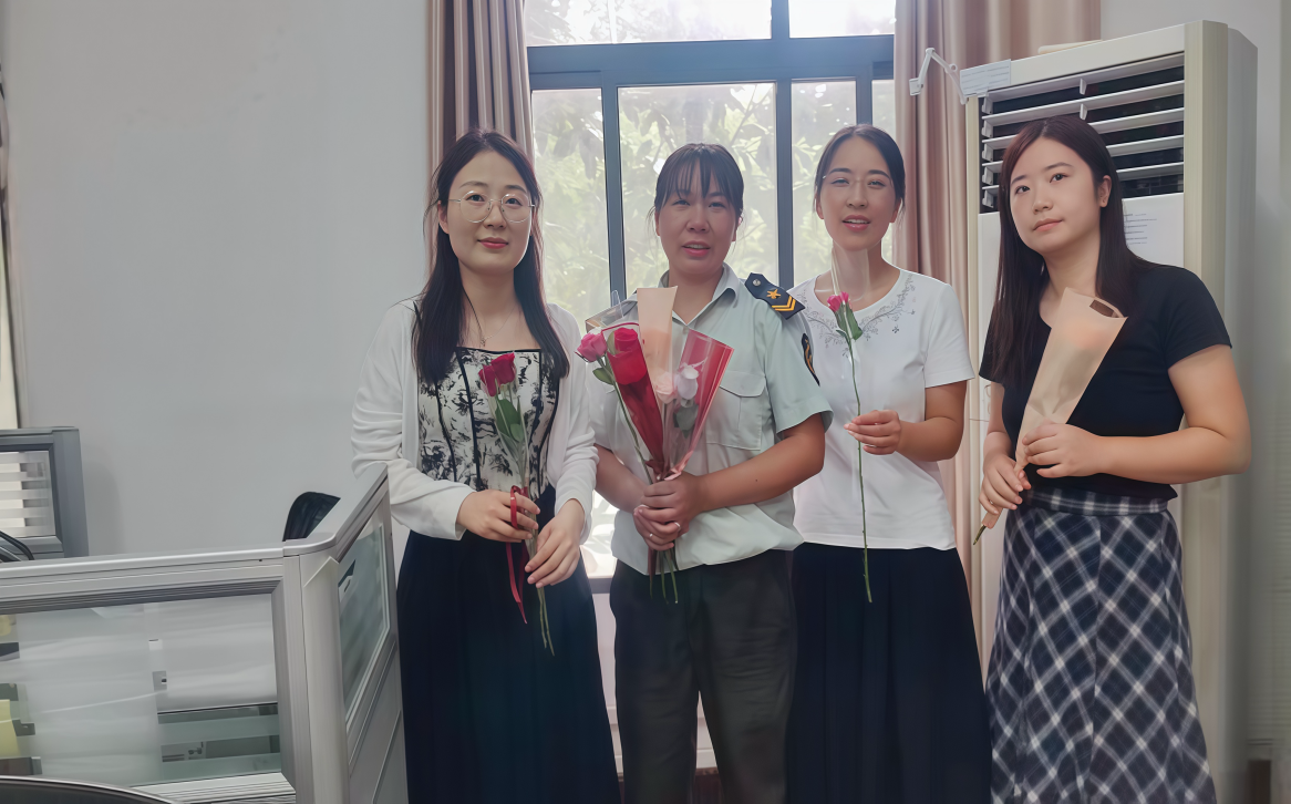 物业服务团队则以“鲜花传情”的方式,为全校教职工传递祝福。节日当天一早,物业工作人员便带着精心准备的鲜花,在教学楼、图书馆等出入口,为前来工作的老师们送上鲜花与节日祝福。“老师,祝您节日快乐!”一句简单的问候,一束娇艳的鲜花,让老师们在踏入校园的第一时间,便感受到浓浓的节日氛围与后勤团队的心意。