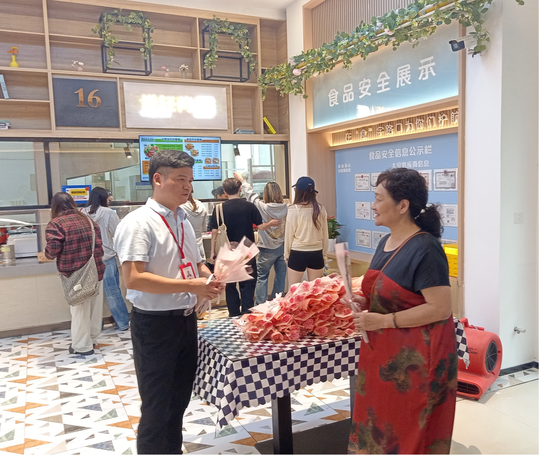 饮食管理中心精心策划了多样化的感恩活动,真切体现后勤人对教师的深厚情谊。在武昌校区一食堂专门布置了温馨雅致的午餐专区,邀请退休与在职教师共享节日午餐,工作人员热情献上鲜花,老师们欢聚畅谈,现场暖意融融;二食堂为教师们准备免费香酥可口的炸鸡腿,领取窗口井然有序,传递着后勤饮食人对老师辛勤工作的真挚感谢。