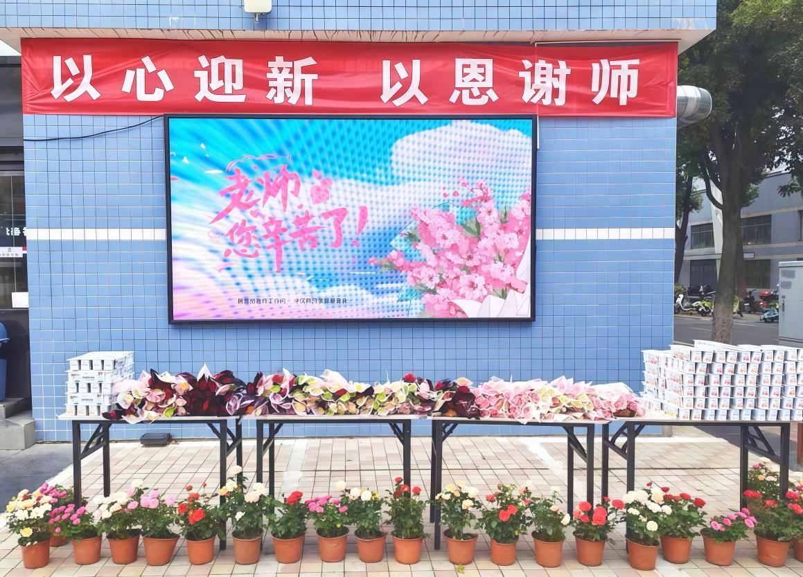 教室管理中心聚焦“教学保障第一线”,在教师节前完成了全校所有教学楼的设施检修与环境优化。上午在教学楼前布置了节日展板与装饰。课间时分,工作人员热情向教师送上祝福和鲜花。这些贴心物资涵盖日常办公与健康关怀多个细节,旨在切实改善教学体验,让老师们在更加舒适、便捷的环境中开展教学工作。