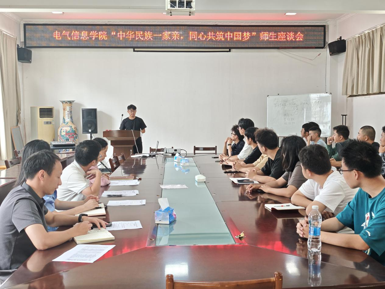 本网讯(通讯员 李雨虹)10月11日中午,电气信息学院在4B 319会议室召开“中华民族一家亲,同心共筑中国梦”师生座谈会。学院党委书记谢春晖、辅导员和少数民族学生代表参加会议,座谈会由学院党委副书记周磊主持。