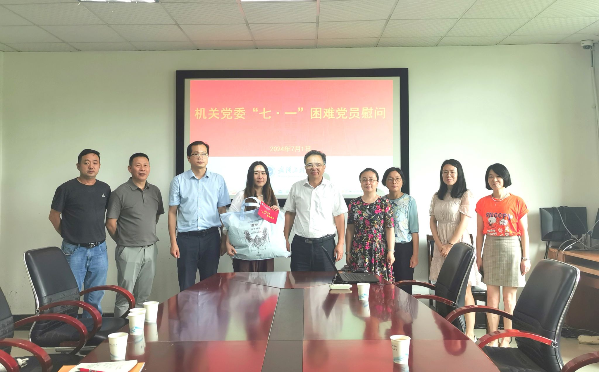 本网讯(通讯员 沈霁月)在中国共产党成立103周年之际,校党委副书记(正厅长级)潘慧明一行看望并慰问了机关部分困难党员,向他们致以节日的问候,送上党组织的温暖关怀。