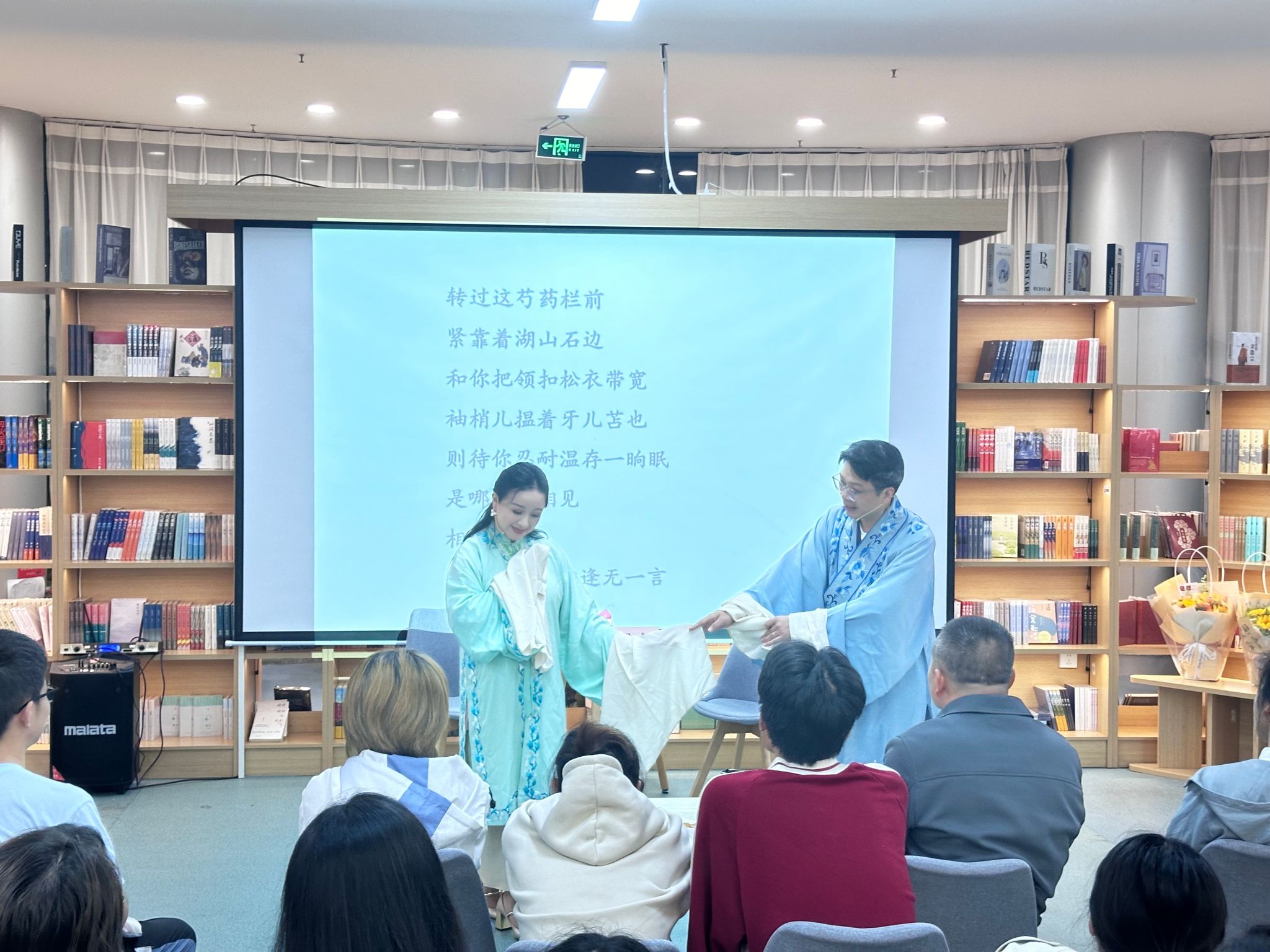 本网讯(通讯员 杨雅)5月3日,2024年读书节专场暨“不到园林,怎知春色如许”昆曲生旦表演高雅艺术进校园活动在流芳校区图书馆倍阅书店举办。学校特邀江苏省演艺集团昆剧院旦行名家、国家一级演员徐思佳,江苏省演艺集团昆剧院小生名家、国家二级演员周鑫为我校师生开展《昆曲艺术导赏》公开课。校团委副书记邓欢出席本次活动。
