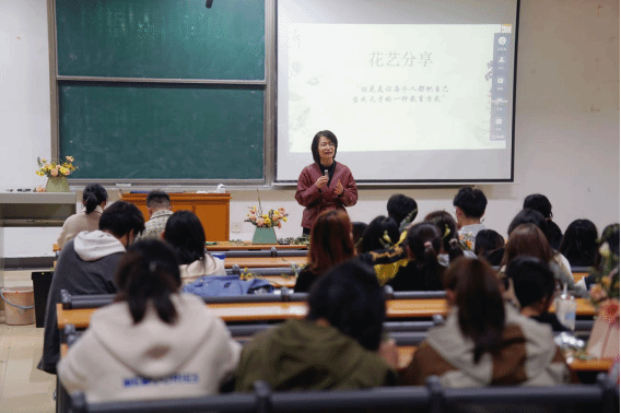 本网讯(通讯员 芦梦荻)4月7日晚,由学生工作处、心理健康中心主办,材料科学与工程学院、“小溪流”辅导员工作室承办的“‘花’点时间 ‘植’愈我心”插花实践活动在流芳校区L2107教室顺利举行。本次活动邀请华中农业大学园艺疗法项目兼职讲师杨雪作为主讲老师,心理教育中心主任徐迪迪、各学院辅导员代表及80余名学生参与本次活动。
