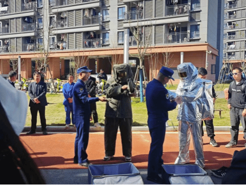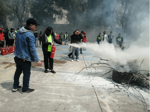 疏散完毕后,保卫处联合属地消防救援部门开展了消防安全教育培训活动,向参演学生讲解了如何做好火灾预防、如何掌握逃生技巧、如何正确使用灭火器等知识,并现场演示,让师生亲自操作灭火器,佩戴防毒面具等,师生热情参与,操作规范。