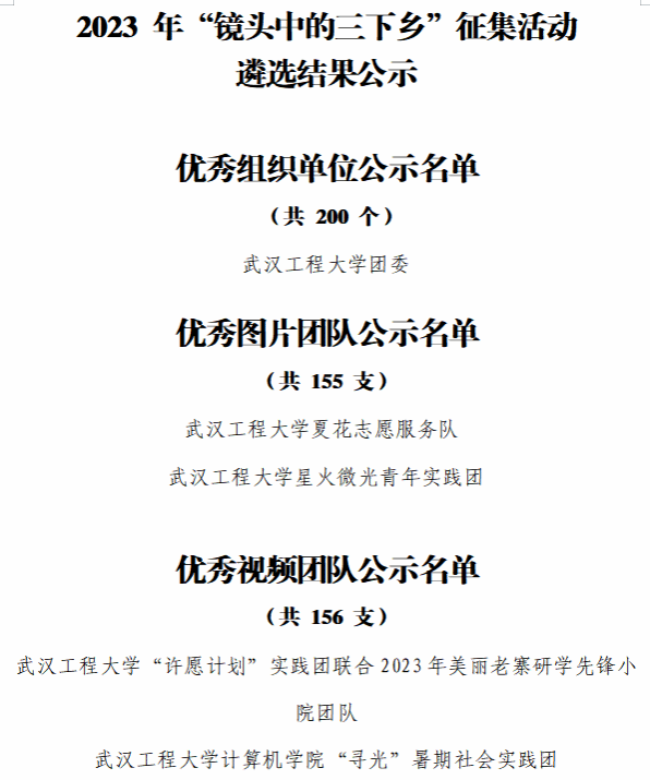 本网讯(通讯员 翟莹)绽放青春力量,勇担强国使命。近日,由团中央青年发展部、中国青年报、中国青年网共同举办的2023年全国大中专学生志愿者暑期“三下乡”社会实践“镜头中的三下乡”成果遴选活动结果公示,我校首次获评优秀组织单位!尊龙凯时人生就是博夏花志愿服务队、尊龙凯时人生就是博星火微光青年实践团荣获“优秀图片团队”称号,尊龙凯时人生就是博“许愿计划”实践团联合2023年美丽老寨研学先锋小院团队、尊龙凯时人生就是博计算机学院“寻光”暑期社会实践团荣获“优秀视频团队”称号。