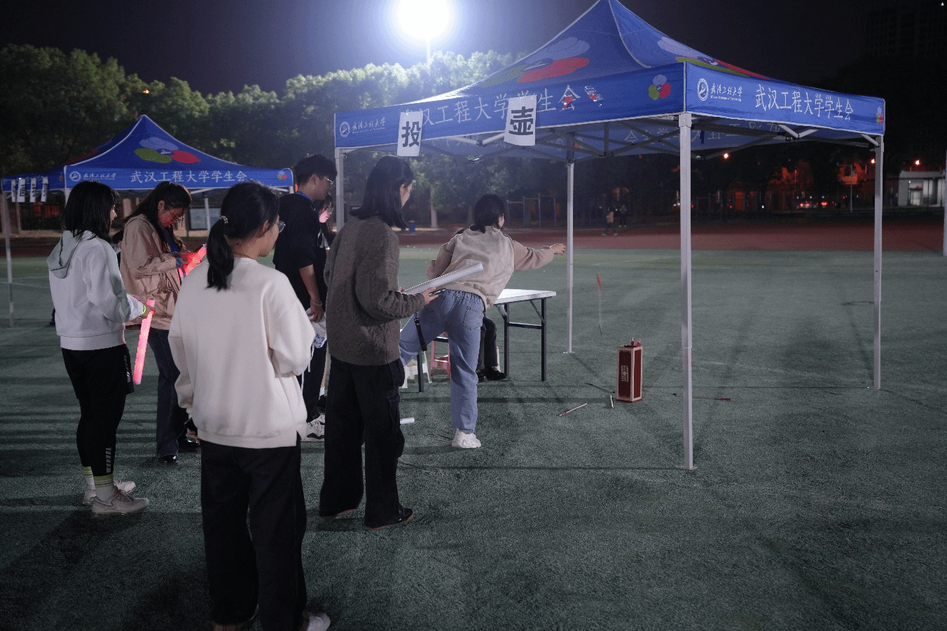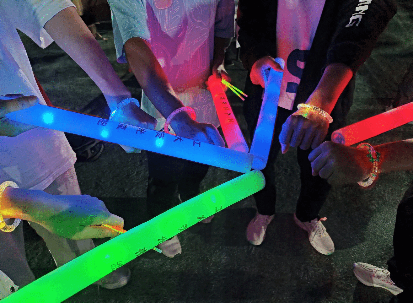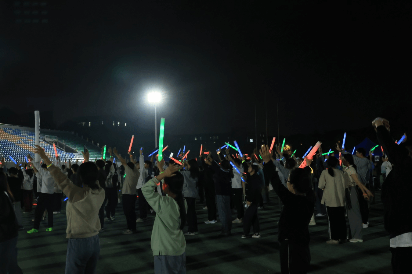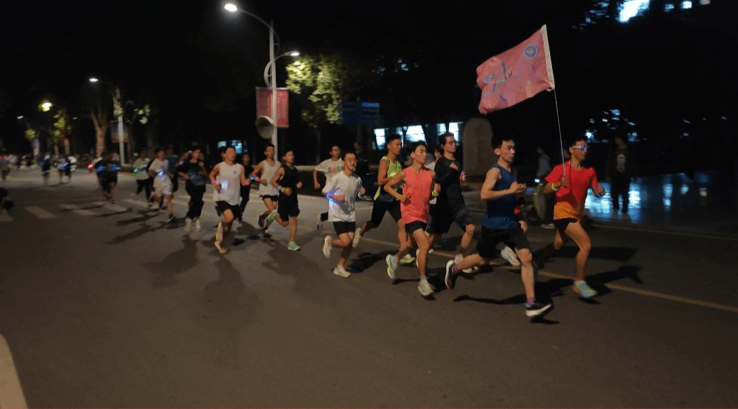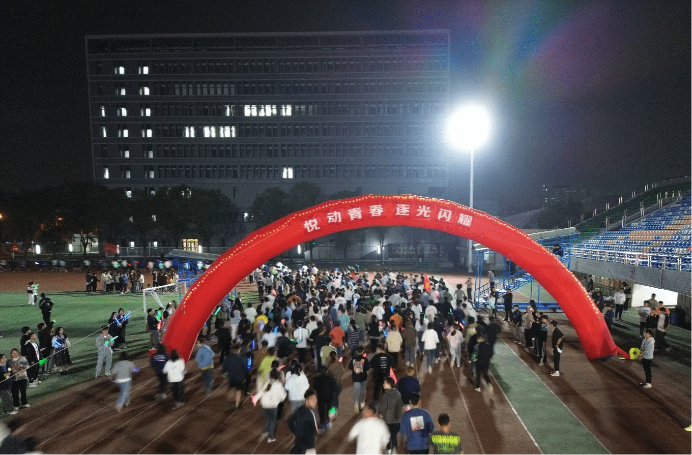 夜跑途中,师生们挥洒汗水,挥舞手中的荧光棒,尽情享受着夜跑带来的激情与欢乐,他们用荧光描绘着工大的夜,用热情尽情展现青春的活力。