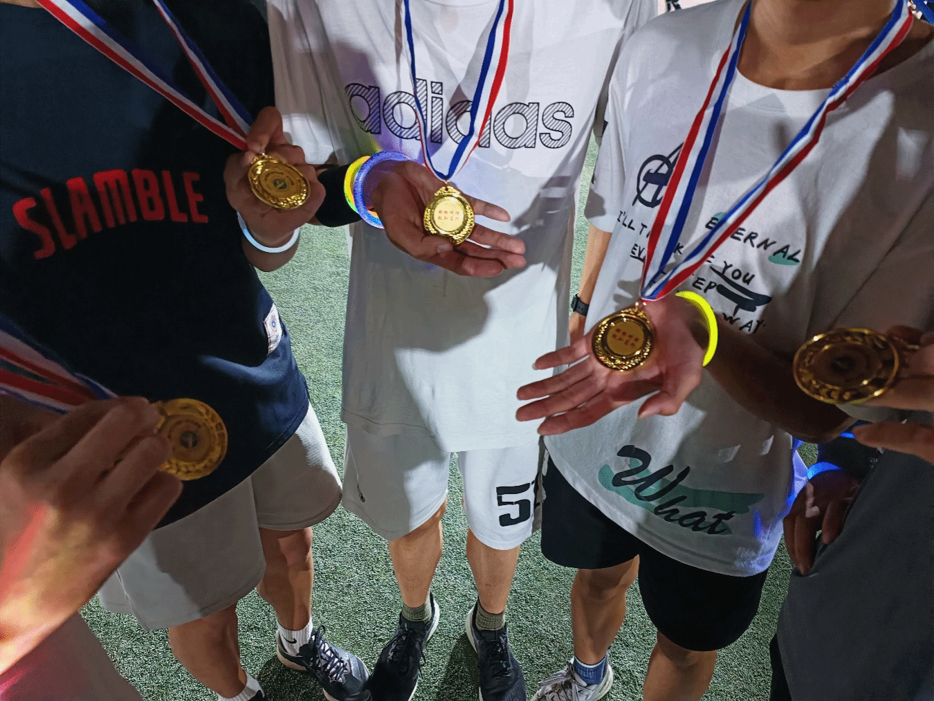 与此同时,运动场上荧光套圈、体育知识问答等趣味游戏也精彩进行,师生们参与游戏、收集图章、兑换小礼品,其乐融融。荧光夜跑结束后,同学们领取专属定制的纪念奖牌,纷纷打卡拍照,留下属于自己的精彩瞬间。
