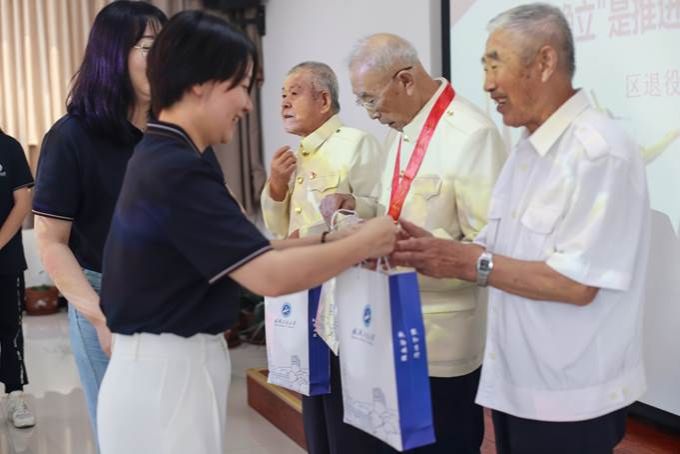 李琪娜首先向三位老兵表示致敬,详细了解了老兵们的身体情况和生活状况,感谢他们为党和国家的默默奉献以及为国防事业所做出的贡献,并代表学校为三位老兵送上慰问品。