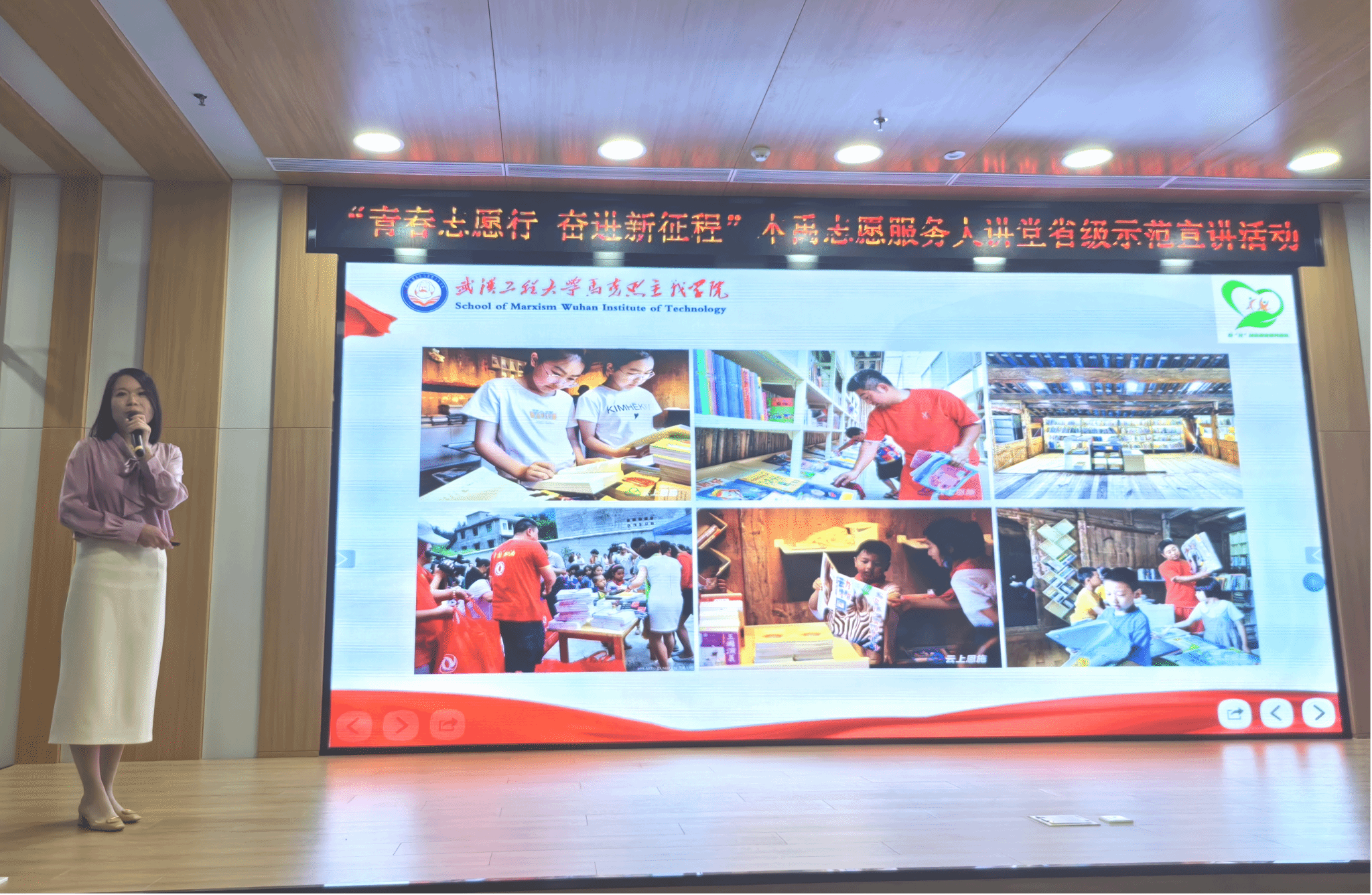 学校百“化”林志愿服务队代表、马克思主义学院“红心向党”红色宣讲团成员雷先娇分享了团队深入恩施乡村开展研学和宣讲的实践经历,并号召全体志愿者用奋斗的青春让今日中国青春正好。