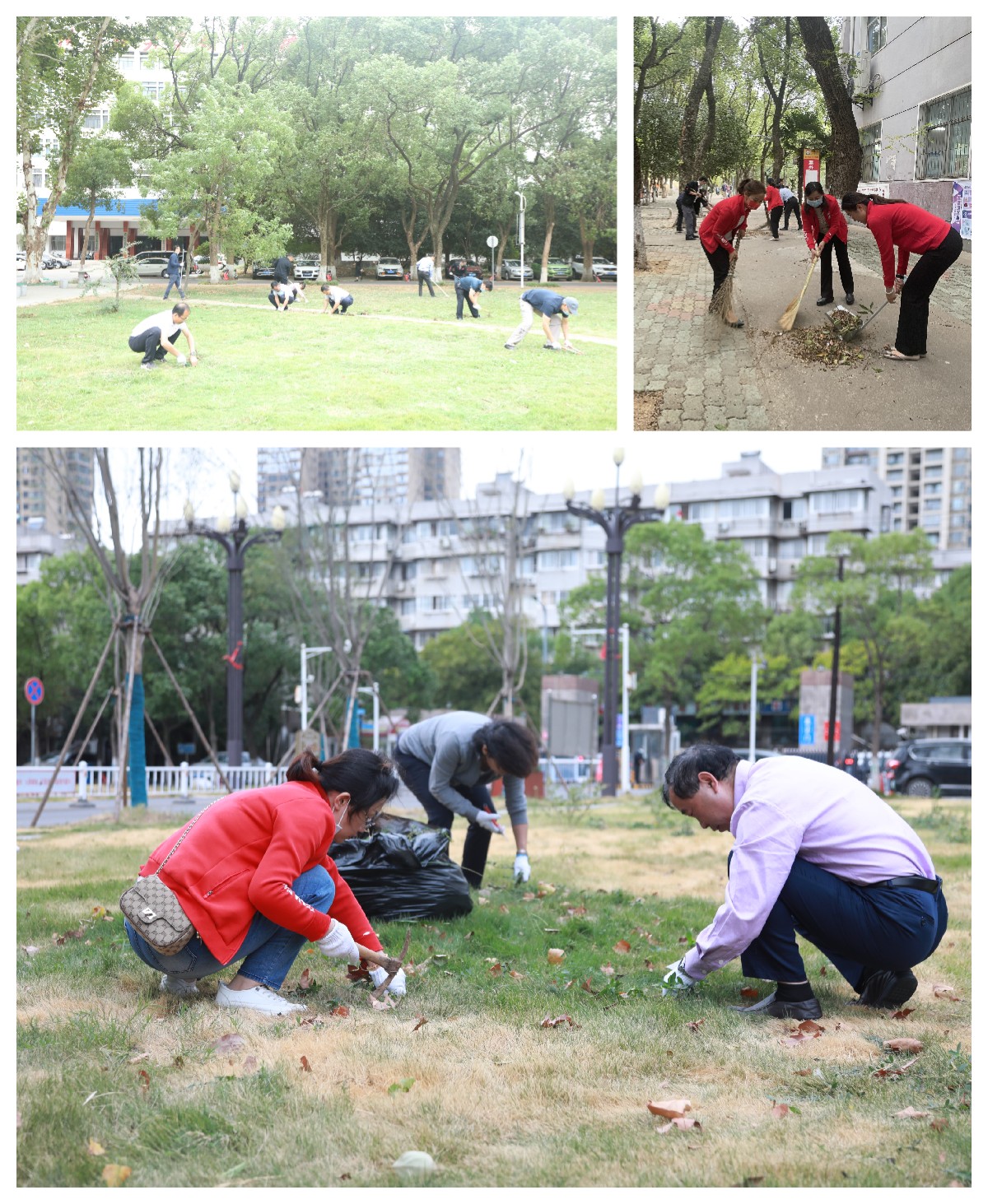 活动仪式后,机关党员干部下沉工程大社区工作队突击队,分成三个小组展开义务劳动,对武昌校区许志伟广场两侧、老年活动中心及叠翠湖休闲绿化带等区域的杂草、卫生进行了清理和打扫。