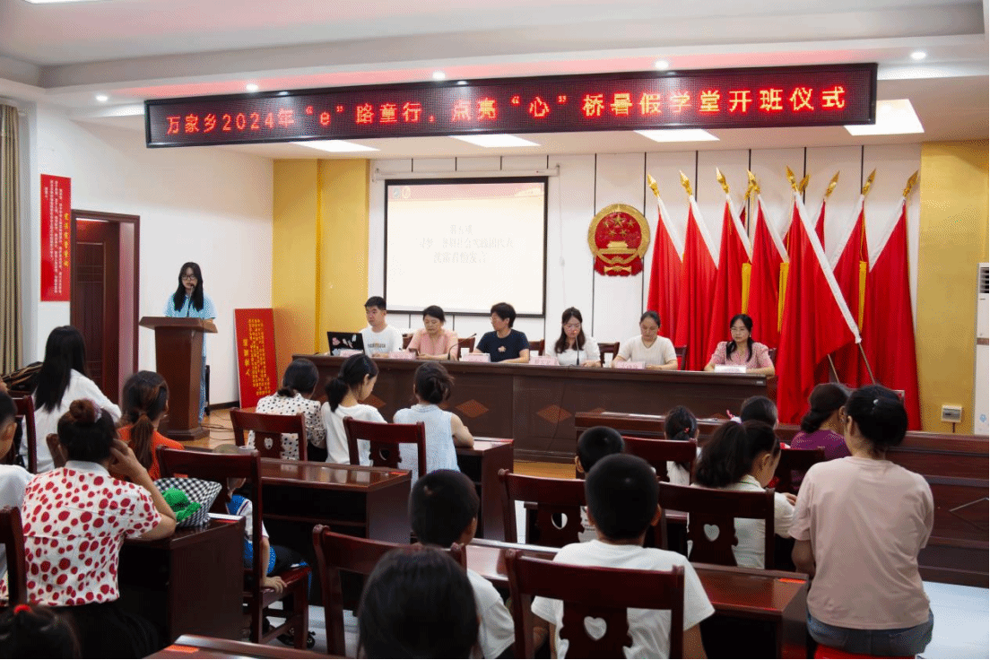 7月15日上午,“寻梦”实践团携手万家乡乡团委在万家岭社区三楼会议室开展“暑假学堂”开班仪式。万家岭社区相关负责人,计算机学院辅导员,“寻梦”实践团以及学生家长、留守儿童们参加活动。