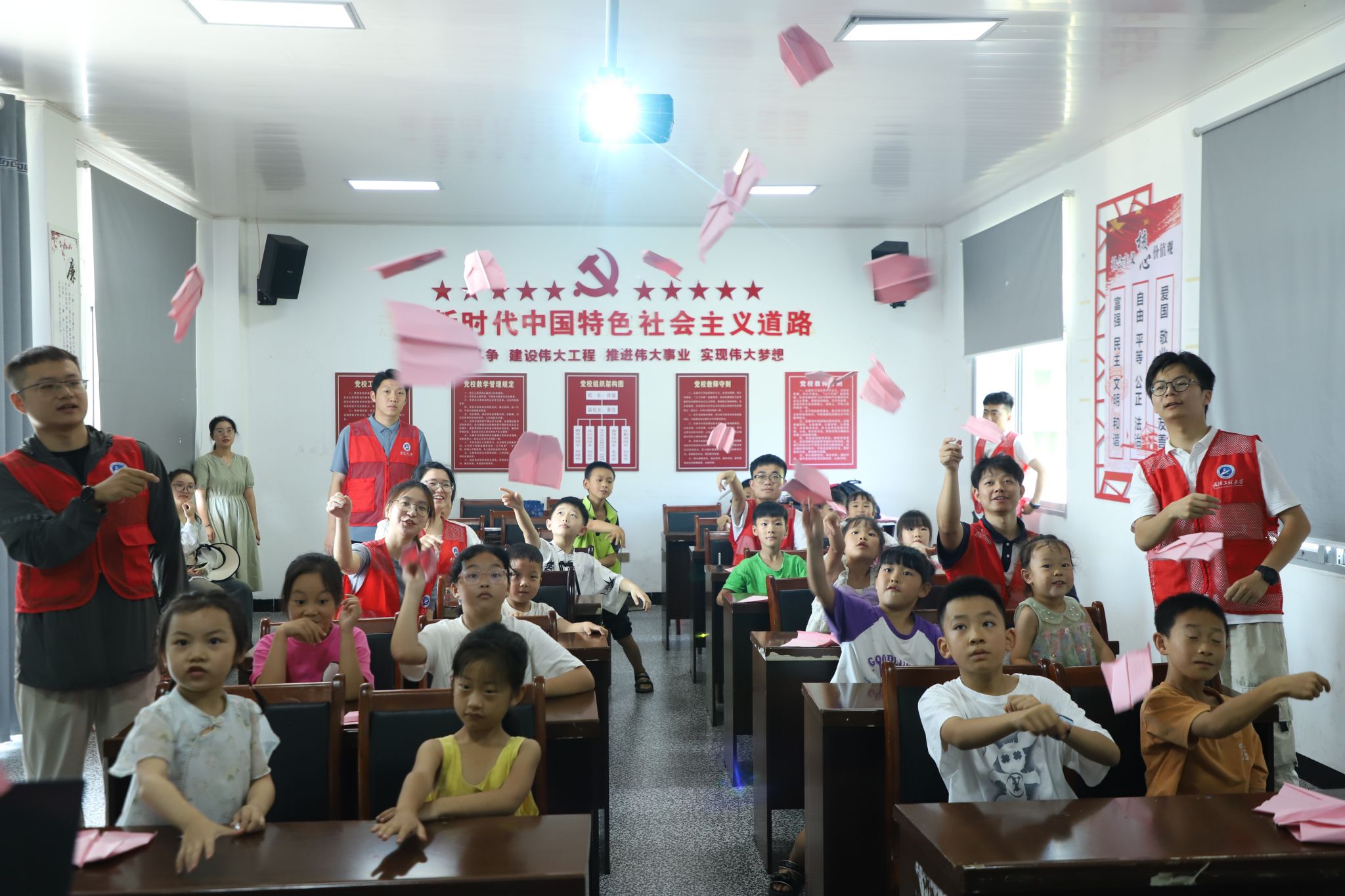 “百校联百县兴千村”行动是在乡村振兴新形势下,充分发挥高校教育、科技、人才优势,采取的新方式、新举措。在老寨村和大坝村的科普小课堂上,大朋友与小朋友实现了一场双向奔赴,通过简单却充满智慧的纸飞机制作,让孩子们感受空气动力学的奇妙原理;机器人大战,无人机翱翔,通过动态展演和现场互动,充分展现了现代科技与创造力的融合;以实例讲解引领孩子们进入AI的奇妙世界,充分感受人工智能时代的无限可能和创新机遇;通过妙趣横生的化学小实验,让孩子们近距离观察元素间的奇妙变化。科普小课堂充分激发了孩子们对科学知识的学习兴趣,让探索和创新意识的种子在他们心中萌芽生长。