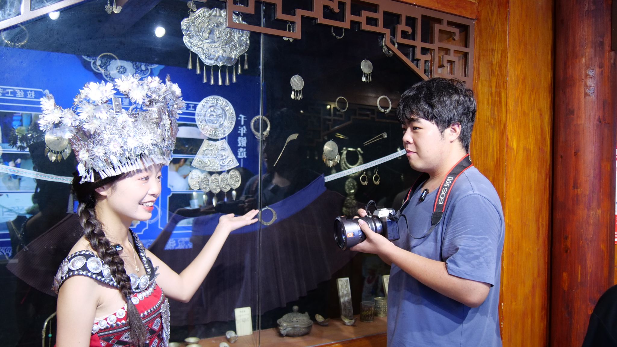 在鄂西苗族非遗锻制技艺传习所,实践团成员被繁复精美的银饰吸引住了目光,这里的银器文化源远流长。闪烁着熠熠光辉银饰,无声地诉说着这个民族的历史与文化,这不仅是姑娘们盛装时的精美点缀,更代表了一个民族对美好生活的虔诚祈愿。