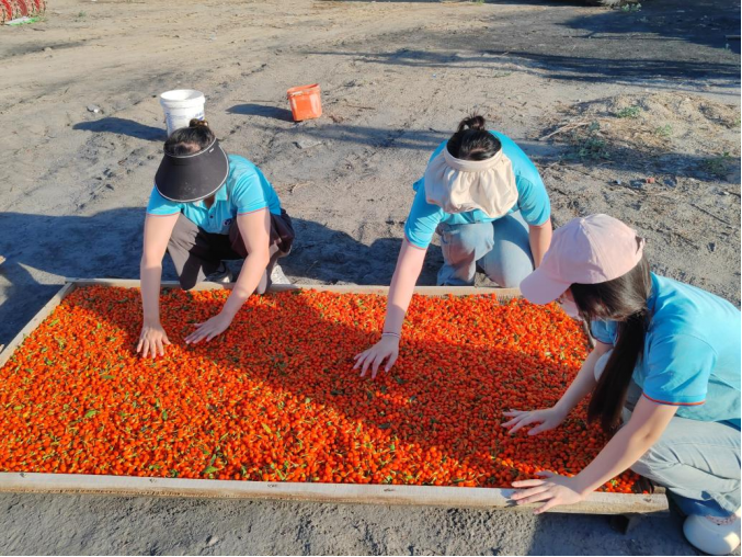 采摘结束后,在杞农的悉心指导下,队员学习了枸杞晾晒的传统技艺,从挑选合适的晾晒场地到均匀摊开枸杞,再到定时翻动以确保每一面都能充分晒干,每一个步骤都认真参与,确保每一颗枸杞都能得到妥善处理,保持其最佳品质。