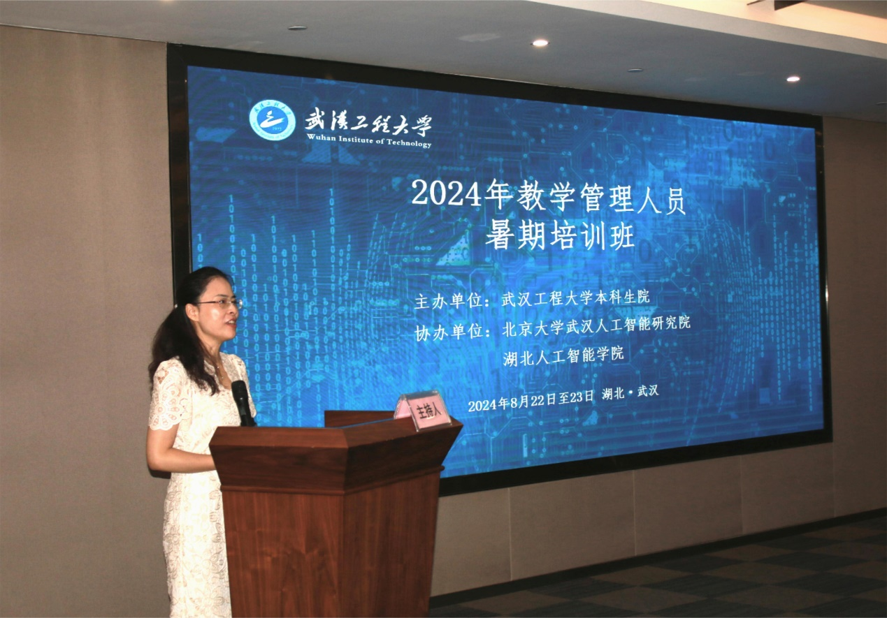 本网讯(通讯员 伍志显 张昀 胡杭)8月22-23日,学校2024年本科教学管理人员业务培训班在北京大学武汉人工智能研究院和华为终端科技有限公司成功举办。副校长喻发全,北京大学教育学院二级教授汪琼,北京大学武汉人工智能研究院副院长夏文华受邀出席开班仪式,各学院(部)分管本科教学工作副院长(副主任)、教务员和本科生院全体工作人员,共70余人参加了本期业务培训班。开班仪式由本科生院党总支书记杨克平主持。