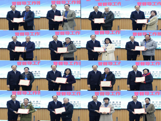 蒋尹华介绍了学校本科教学督导基本情况,宣读了《关于调整学校教学督导组成员的通知》,副校长喻发全向新聘任督导表示祝贺,并为全体校本科教学督导颁发聘书。