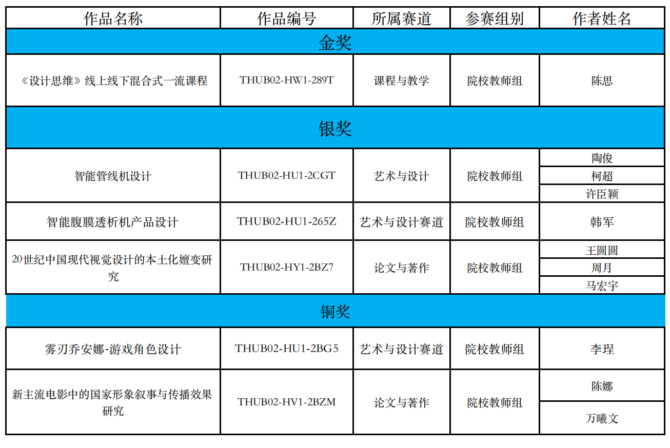 本网讯(通讯员 叶靖雯 刘怡融 张梓涵)近日,第五届“东方创意之星”教学创新大赛国赛获奖名单正式公布,艺术设计学院教师共获奖项6项,其中金奖1项、银奖3项、铜奖2项。其中,学院教师陈思以《设计思维》线上线下混合式一流课程荣获该赛“课程与教学”赛道金奖。