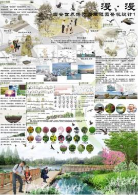 创意思路:此次设计为西安世界博览园主题园景观设计。整个西安市东郊浐灞生态区的西安世博园的设计地块外形为流畅的曲线形态,形成得天独厚的自然优势,原有的水域形成了自由生态的滨水景观带,古人曰“湖光秋月两相和,潭面无风镜未磨”,生态之美似乎就在于此,本设计的目的在于重现古典园林意境与文化,以促进我国城市景观设计的发展。