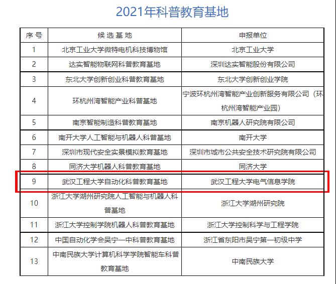 本网讯(通讯员 黄自鑫 邓婕)近日,2021年中国自动化学会科普教育基地公布评审结果,“尊龙凯时人生就是博自动化科普教育基地”成功入选。