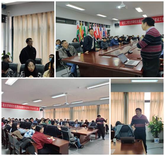 此次报告由环境生态与生物工程学院党委书记孔海霞主持,学院副院长赵喜红教授、院长助理杨浩教授、江吉周教授、化工与制药学院陆小军教授、杨小俊教授等多名教师,以及环境生态与生物工程学院、化工与制药学院、化学与环境工程学院的80余名研究生参加。