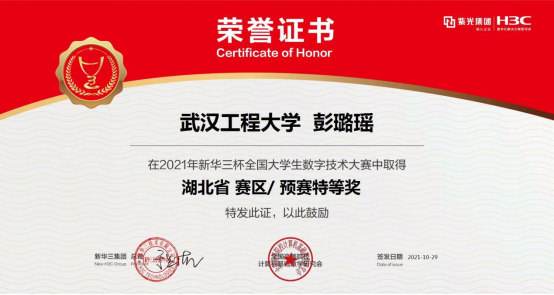 本网讯(通讯员 徐银霞)2021年新华三杯全国大学生数字技术大赛湖北省赛区预赛结果近日揭晓,我校计算机科学与工程学院、人工智能学院学生获本科组特等奖1项、成功晋级全国总决赛,获本科组优胜奖6项。