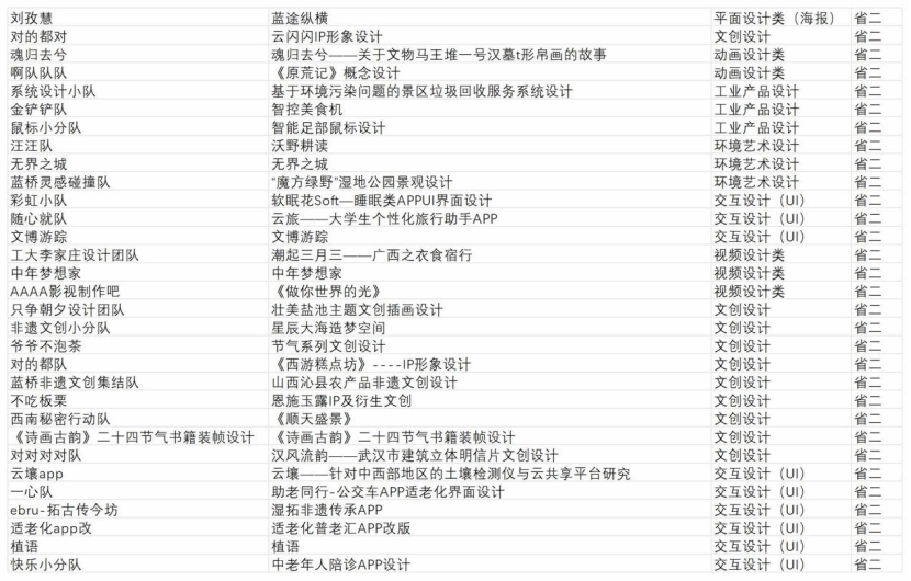 其中,袁圣朝(指导老师:嵇群晶),王逸伦、黄祎航(指导老师:张芳、穆波),曾琪、黄垚、王诗娴(指导老师:范蓓),李嘉怡、张家琪、汪瑞哲(指导老师:刘文、王金周),张家琪、李嘉怡、郭宇(指导老师:葛菲、刘文)等五组优秀团队脱颖而出,荣获全国一等奖。此外,杨彤等12组参赛团队获得了全国二等奖;荣获全国二等奖,杨睿雯等9组团队荣获全国三等奖。在蓝桥杯省赛评选中,艺院学子斩获了一等奖26项、二等奖31项、三等奖46项、优秀奖20项。