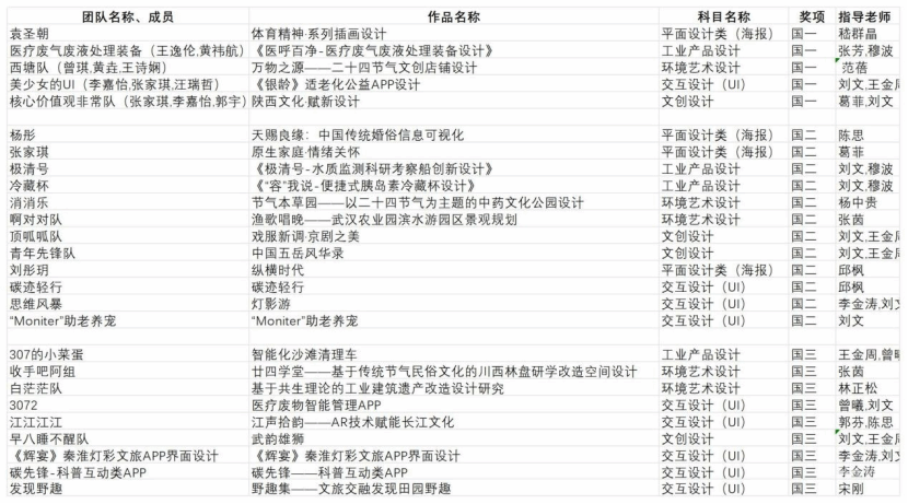 丰硕的竞赛成果是对艺术设计学院学子综合创作能力和专业水平的肯定,也是学校设计学科实力和教学成果的综合体现。艺术设计学院将继续创新、实践、协作、进取,进一步提升创新型、复合型高水平人才的培养质。(审稿 夏志敏)
