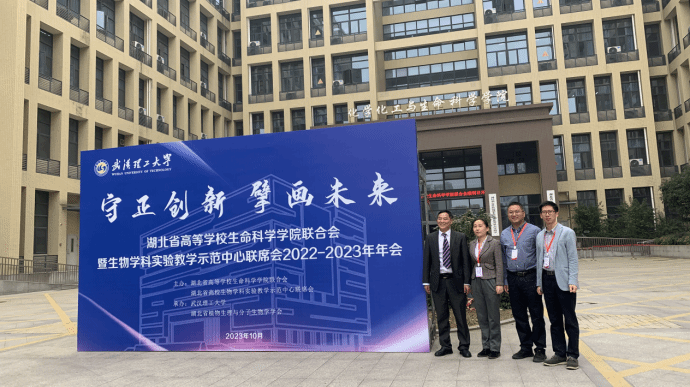 本网讯(通讯员 陈功)10月27-28日,湖北省高等学校生命科学学院联合会暨生物学科实验教学示范中心联席会2022-2023年年会在武汉理工大学举行。本次会议共有来自湖北省33所高校的领导、专家、教师等130余人参加。我校由环生学院党委书记孔海霞带队,学院党委委员韩新才、院长助理杨浩和陈功参加了此次会议。