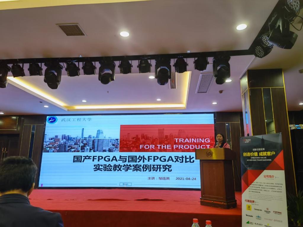 电气信息学院通信工程系智慧网络与信息处理团队的邹连英博士作了题为《国产FPGA与国外FPGA对比实验教学案例研究》的报告,在报告中,邹连英博士指出,虽然目前由于FPGA市场容量小,巨额投资收回成本难,行业高度集中,大部分仍然被国外厂商垄断,但国产FPGA已经逐渐缩短了与国外技术水平的差距。通信工程专业的电子系统设计的实践课程中已经采用国产FPGA(广州高云半导体)平台技术,实验效果良好。国产FPGA虽然面临重重挑战,但是如果能持续避开专利壁垒,差异化定位产品,实现技术和市场的创新与突破,未来可期,邹连英博士的讲解引来各大院校的激烈讨论,反响非常好。
