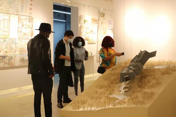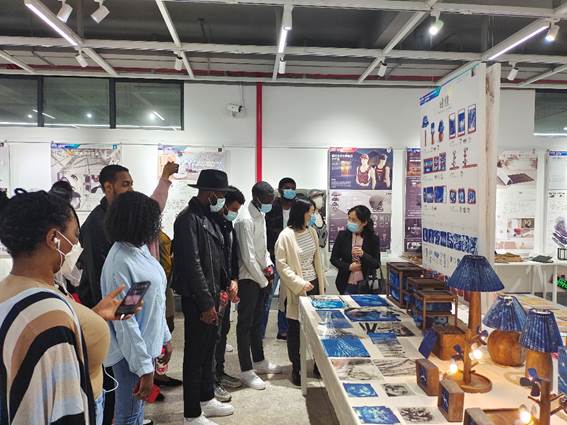 本次“湖北美术学院2022届本科毕业作品展”涉及工业设计、环境艺术、动画、水彩画、油画、书法、壁画及雕塑等10余个艺术展馆。作品题材多样、内容丰富、主题鲜明、富有时代气息,融入湖北地方文化,其丰富的艺术想象力令留学生们惊叹不已。