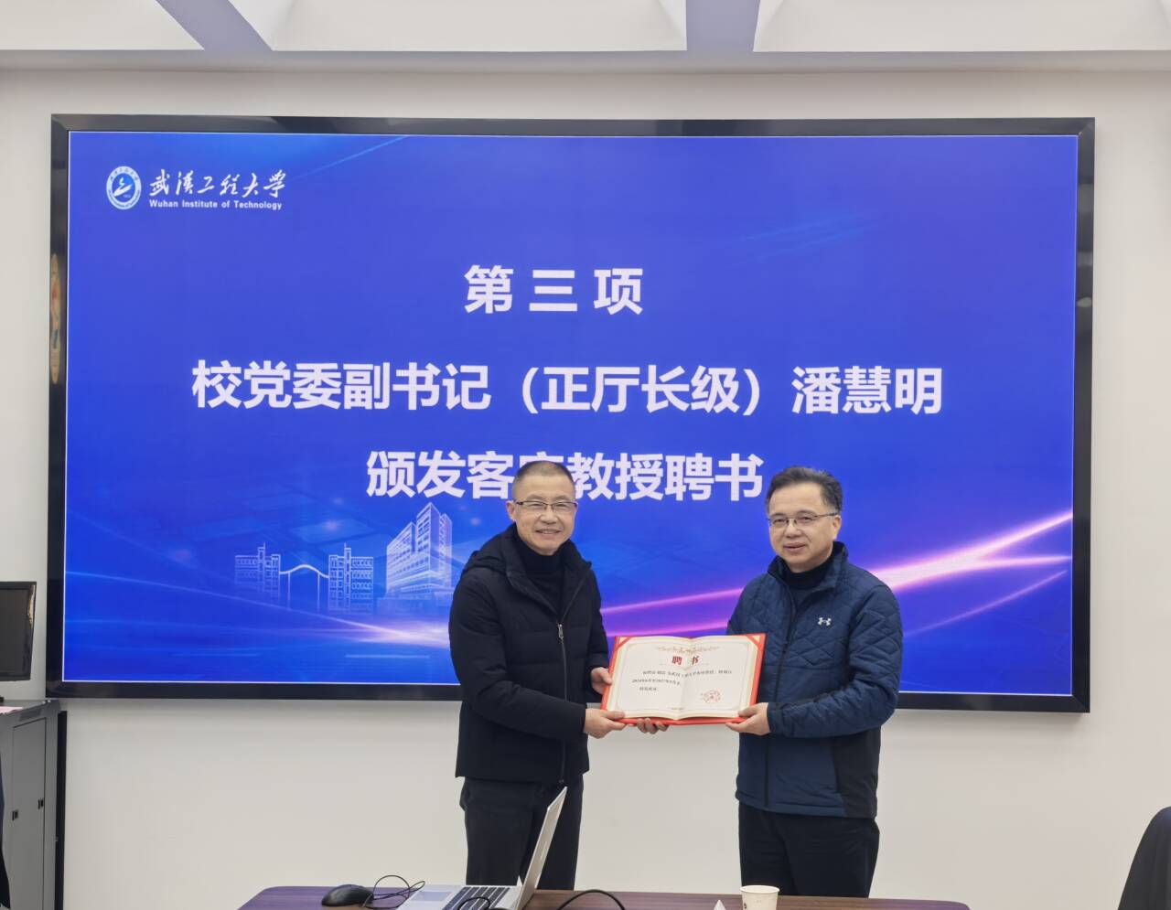 本网讯(通讯员 杨娟)12月26日上午,原湖北省特种设备检验检测研究院院长、武汉市锅炉压力容器检验研究所总工程师吴遵红、武汉市锅炉压力容器检验研究所总工程师胡滨、武汉东海石化重型有限公司总工程师李明凯应邀来校交流,并受聘为我校客座教授。受聘仪式在机电工程学院210会议室举行,校党委副书记(正厅长级)潘慧明、继续教育学院院长严也舟以及机电工程学院班子成员参加仪式,仪式由机电工程学院院长郑小涛教授主持。
