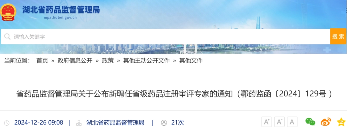 本网讯(通讯员 张双双)12月26日,湖北省药品监督管理局发布了“省药品监督管理局关于公布新聘任省级药品注册审评专家的通知(鄂药监函〔2024〕129号 )”,我校化工与制药学院制药系古双喜教授、胡学雷教授、吴风收教授、刘慧副教授、郭举副教授、曹爽副教授等6名教师入选省级药品注册审评专家。在此轮评选中,全省共有14名专家入选,我校入选人数最多。
