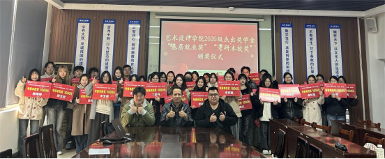 本网讯(通讯员 朱华杰)近日,艺术设计学院2020级第五期“杰出”奖学金颁奖仪式在艺术楼会议室进行。本次共有41名学生获得“杰出”奖学金,奖学金共计4.1万元,全部由艺术设计学院院长桂宇晖教授个人出资。