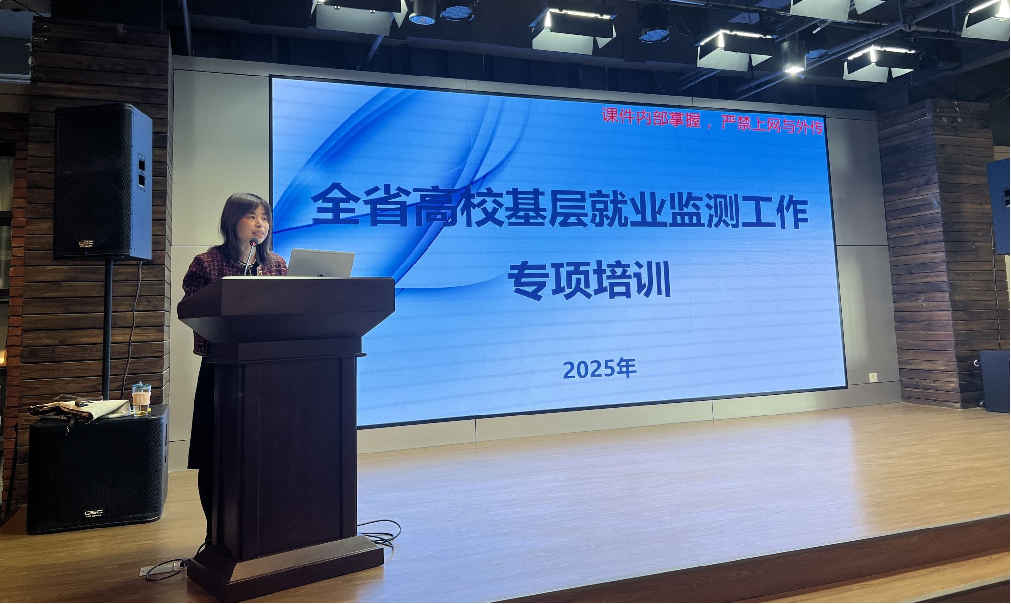 詹迎春老师作《全省高校基层就业监测工作专项培训》。詹老师围绕基层就业监测的核心任务,从政策依据、数据采集标准、系统操作流程三大维度展开深度解析。她结合教育部最新文件要求,重点强调了就业数据真实性核查机制,通过案例分析指出常见填报误区,并现场演示就业监测平台的操作规范。