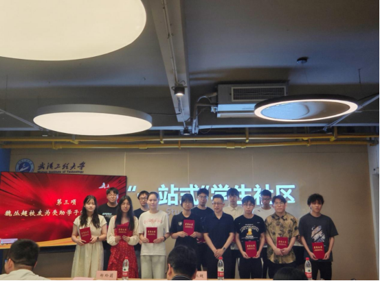 学院党委副书记谢姗姗宣读机电工程学院2023—2024年“红齿轮”励志奖助学金获奖名单。学校95级机制校友、武汉工大科创股份有限公司总经理魏丛超先生为获奖学生颁发荣誉证书。