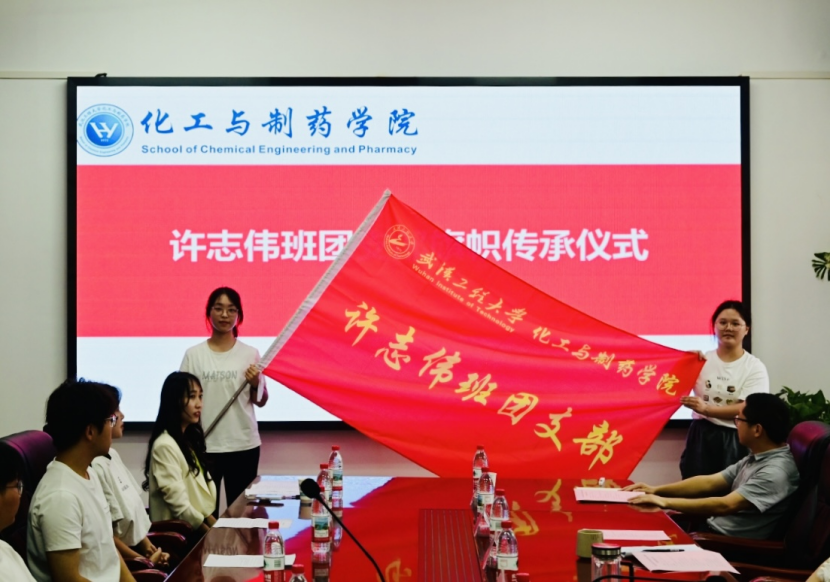 许志伟班团支部旗帜传承仪式中,2021级负责人郑重将旗帜交予2023级学生代表,象征着奉献、担当、卓越的精神火炬在代际间薪火传承,生生不息。