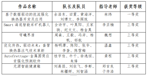 作为我国能源装备领域规模最大、层次最高的研究生创新实践平台,本届大赛以更鲜明的绿色导向、工程导向与产业导向,紧密围绕国家能源安全与"双碳"战略,紧扣行业"卡脖子"难题,突出实战性与成果转化潜力,进一步强化了赛事对高端人才培养的支撑作用。本届大赛汇聚9875名参赛选手,展示2435件优秀作品,经过激烈角逐,共有来自境内外317个研究生培养单位的662支参赛队入围总决赛。经过竞赛评审,机电工程学院参赛作品《基于数据驱动的扰流强化换热器开发及应用》荣获一等奖,《优化传热,驱动未来:套管换热器注气技术革新》《Autofrettage-金属圆筒应变强化预测软件》《穹曦界盾》《无源智能健康鞋》以及计算机科学与工程学院的《Smart海底智能采矿机器人》均荣获三等奖。