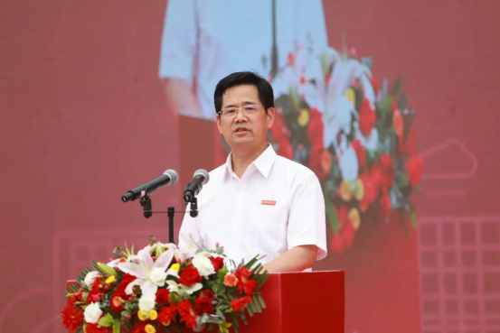 “自信人生二百年,会当水击三千里。”亲爱的同学们,今天对大家来说是一个重要的人生节点,你们将带着母校的期盼和祝福,话别来时的梦想和抱负。披上雄楚的朝霞、穿过流芳的烟雨、回望钟楼的余晖、揉碎泰塑的月光。体育场此地为别,沿着追光的征程,孤蓬万里,驰而不息!