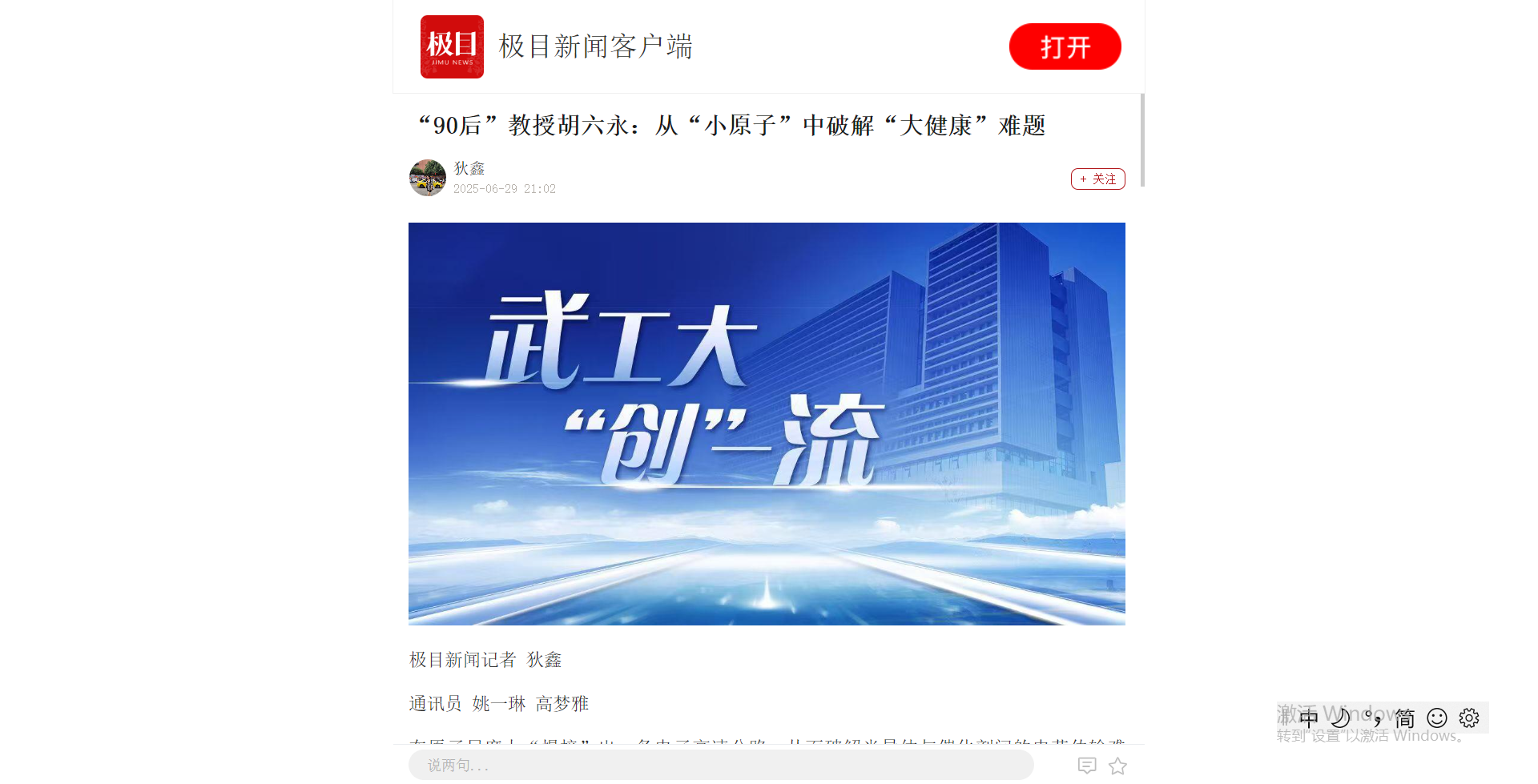 如今,胡六永团队正朝着两个方向深耕:一是推动单原子传感技术的产业化,与企业合作开发便携式农残检测仪;二是探索单原子催化在农业废弃物资源化中的应用,如利用铱掺杂金属有机框架材料提升生物质转化效率。从高分子到单原子,从理论探索到民生应用,胡六永诠释了一位青年科学家的锋芒与担当。