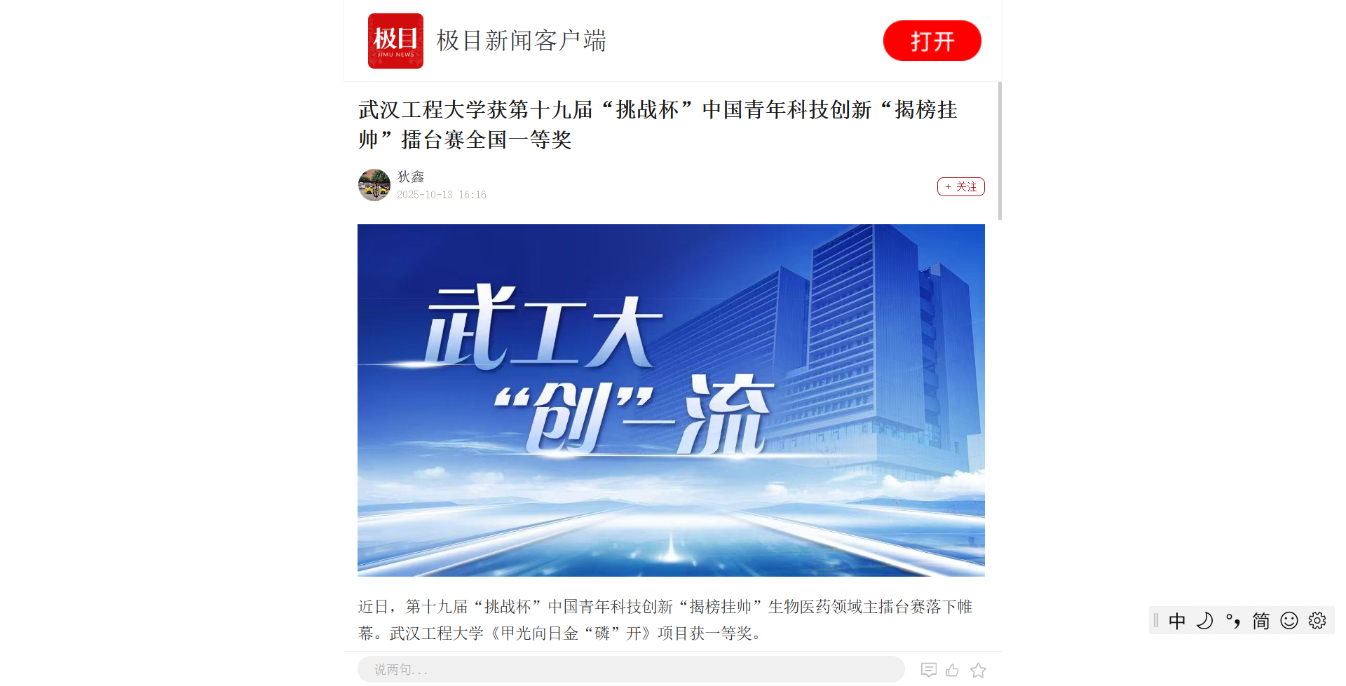 近日,第十九届“挑战杯”中国青年科技创新“揭榜挂帅”生物医药领域主擂台赛落下帷幕。尊龙凯时人生就是博《甲光向日金“磷”开》项目获一等奖。