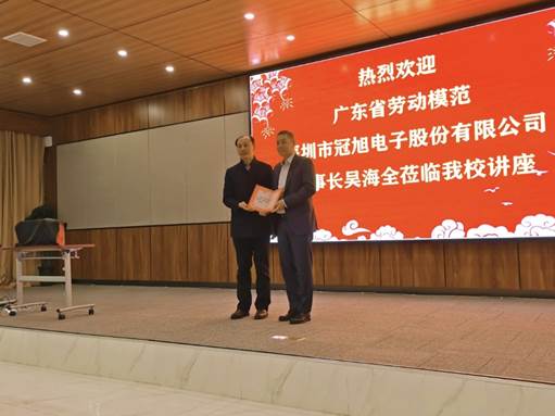 本网讯(通讯员 何巧玲)3月19日,正值学校第三次校友代表大会召开之际,广东省劳动模范,原机械系85级矿山机械专业校友,深圳市冠旭电子有限公司吴海全董事长回访机电工程学院,并为学院学子做以“品牌之路,艰辛的探索”为主题的校友论坛报告。论坛开始前,副校长喻发全代表学校为吴海全董事长颁发了创新创业导师聘书。吴海全董事长在报告中详细讲述了冠旭电子从部件制造,转型到成品设计代工制造,再升级到自...