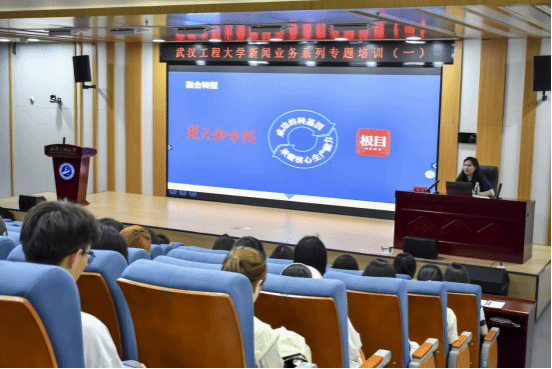 本网讯(通讯员 王莉飞)5月29日下午,学校邀请湖北日报传媒集团楚天都市报、极目新闻记者狄鑫来校为师生开展新闻业务系列专题培训,讲座旨在提升我校新闻宣传工作的质量和水平,不断增强新闻宣传战线的媒介素养。培训讲座由校党委宣传部副部长陈欣主持,学校各部门、各学院师生代表参加培训。本次培训讲座主题为《从媒体视角看教育新闻采写及短视频传播》,狄鑫结合自身新闻业务经历和媒体人经验,从主流媒体的转型发展、教育新闻与融合传播、...