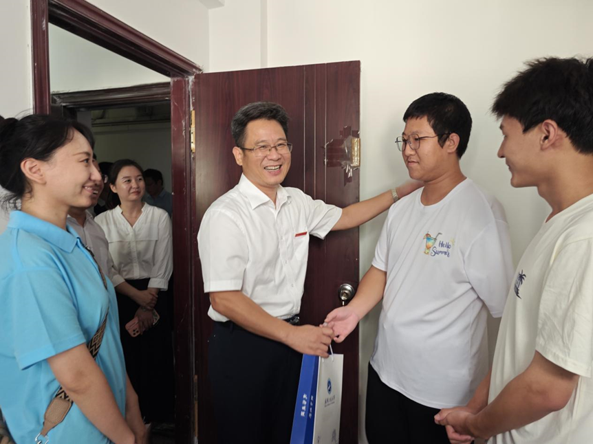 本网讯(通讯员 吴蓓)9月9日—10日,校领导深入2024级新生宿舍,走访慰问新同学并送上亲切的问候与温暖的祝福,帮助新生更好更快地融入新集体、适应新环境、习惯新生活。校党委书记汪伟亲切询问新生来自何处、初入校园的感受及到校适应情况,鼓励同学们尽快融入大学生活,积极参加校园活动,努力拓展视野和能力,不断提升专业素养,以奋斗之姿书写青春华章。“今天报到还顺利吗?”“生活还适应吗?”校党委副书记(正厅长级)潘慧明与新生从住宿饮食、...