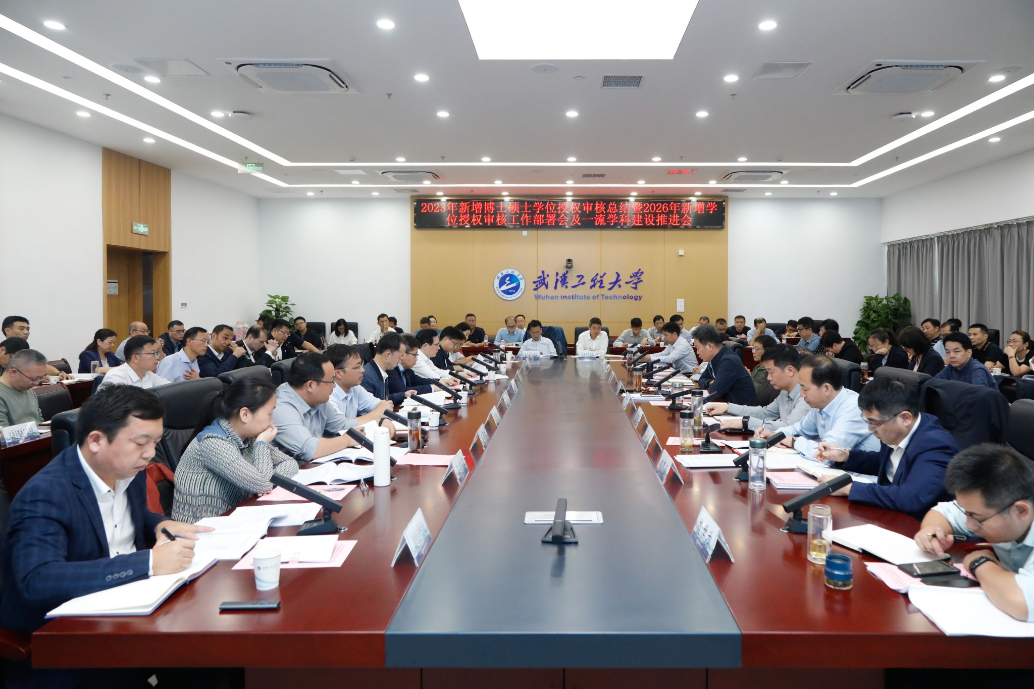 本网讯(通讯员?李念 何巧玲)10月18日,学校2023年新增博士硕士学位授权审核总结暨2026年新增学位授权审核工作部署会及一流学科建设推进会在教育综合楼103会议室举行。校党委书记汪伟主持会议,校党委副书记李志旭,校纪委书记方文海,校党委常委、副校长朱青林,校党委常委、副校长、组织部部长马小龙,校党委常委、副校长吴云韬,校党委常委、宣传部部长韩高军,校党委常委於世为出席会议。会上,发展规划与学科建设处传达了湖北省学位办2023年新增博士硕士学位授权审核总结暨2026年新增学位授权审核工作部署工作会议精神,...