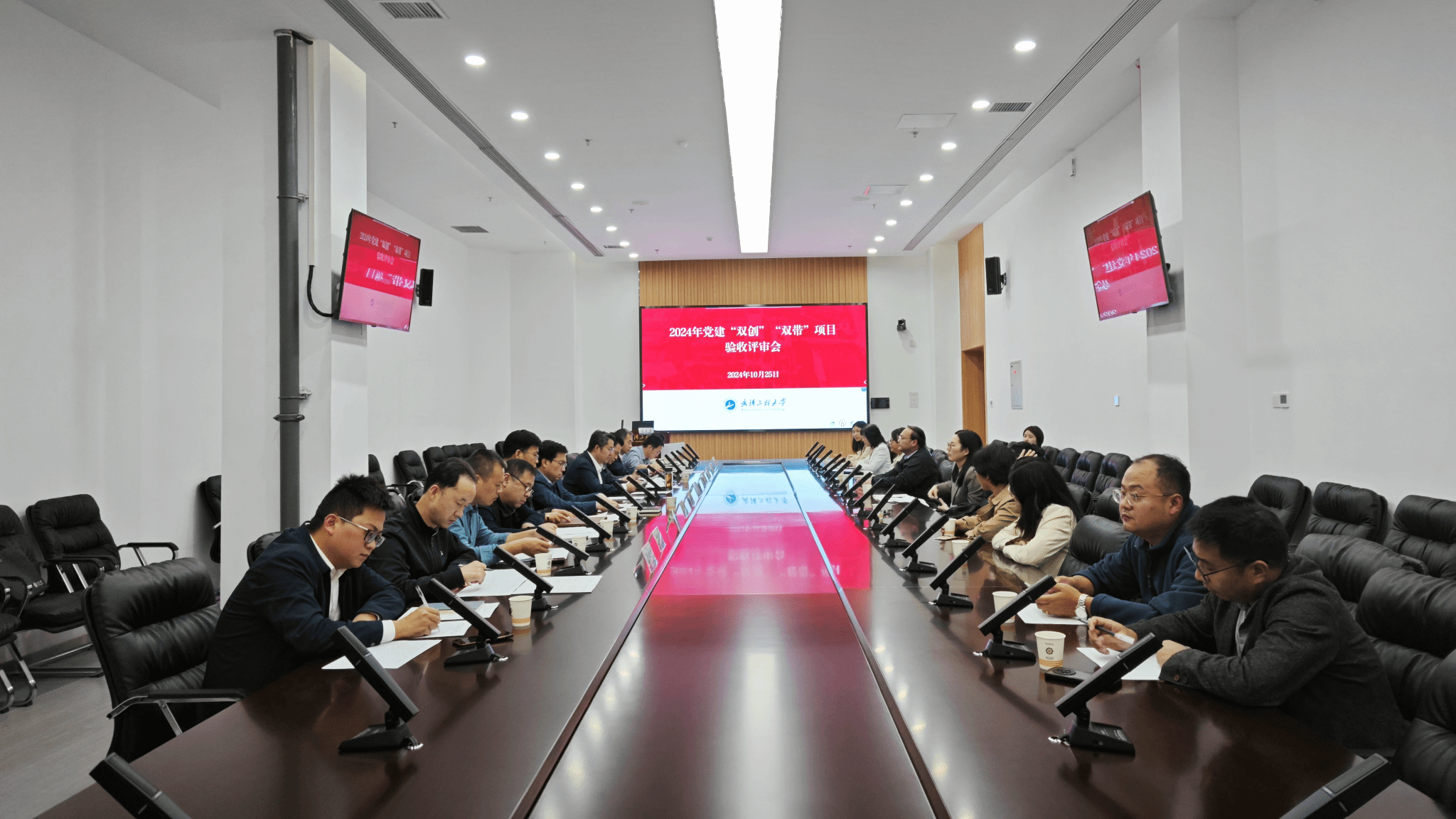 本网讯(通讯员 谭明武)10月25日下午,学校在教育教学综合楼215会议室举行党建“双带”“双创”评审会暨基层党组织党建工作互学互鉴会,对首批校级“双带头人”教师党支部书记工作室、第二批校级党建工作“标杆学院”“样板支部”进行验收评审。会议由校党委组织部常务副部长兼常务副校长王涛主持。各单位负责人重点从立项重点任务完成情况、重要措施落实情况、辐射作用发挥情况及经验宣传推广情况进行PPT展示汇报。验收结果分为“...