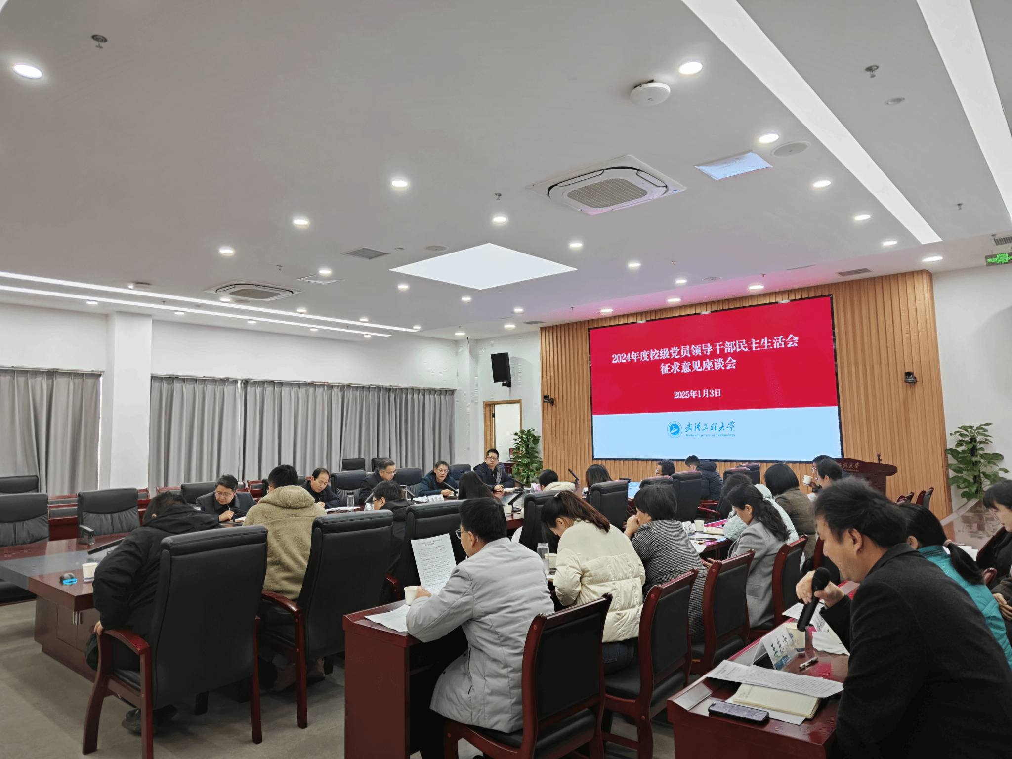 本网讯(通讯员 周雯琪 谭明武)2025年1月3日上午,学校在教育教学综合楼103会议室召开2024年度校级党员领导干部民主生活会征求意见座谈会。校党委副书记(正厅长级)潘慧明主持会议,专题听取对校党委领导班子及成员的意见建议。校党委常委、纪委书记方文海,副校长、组织部部长马小龙出席了座谈会。参加座谈会的人员从学校“一人一策”培育支持对象、一线教师、一流学科主建及支撑学院负责人、文科学院负责人,中层领导干部、样板支部书记、...