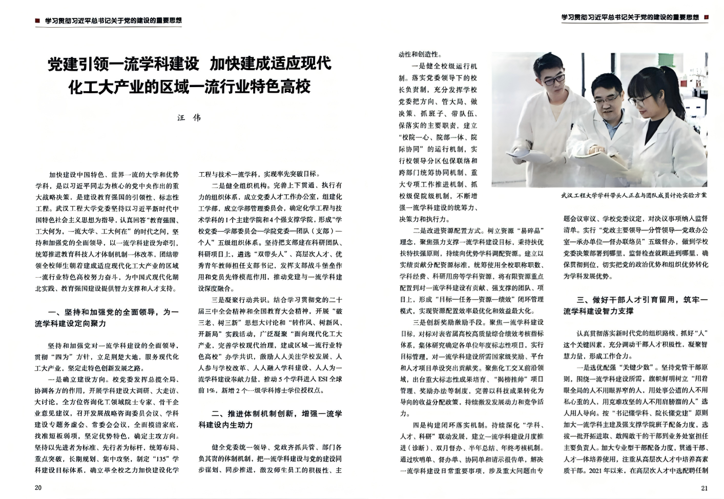 【湖北党建】汪伟署名文章:党建引领一流学科建设 加快建成适应现代化工大产业的区域一流行业特色高校