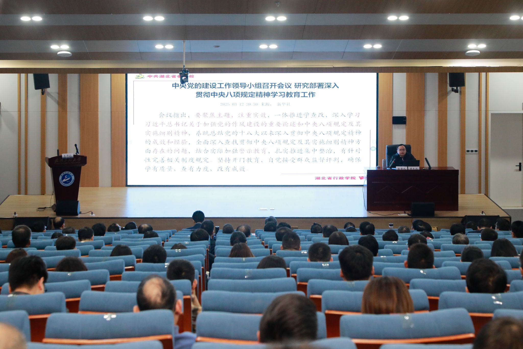 本网讯(通讯员 周雯琪 谭明武)3月27日下午,学校在教育教学综合楼102报告厅举行深入贯彻中央八项规定精神学习教育读书班专家辅导报告会。中共湖北省委党校樊友凯教授应邀作辅导报告。校党委书记汪伟,校党委副书记、校长张彦铎,校党委副书记李志旭,校纪委书记、监察专员方文海,校党委常委、副校长朱青林,校党委常委、副校长喻发全,校党委常委於世为出席报告会。报告会由校党委常委、副校长、组织部部长马小龙主持。樊教授以《...