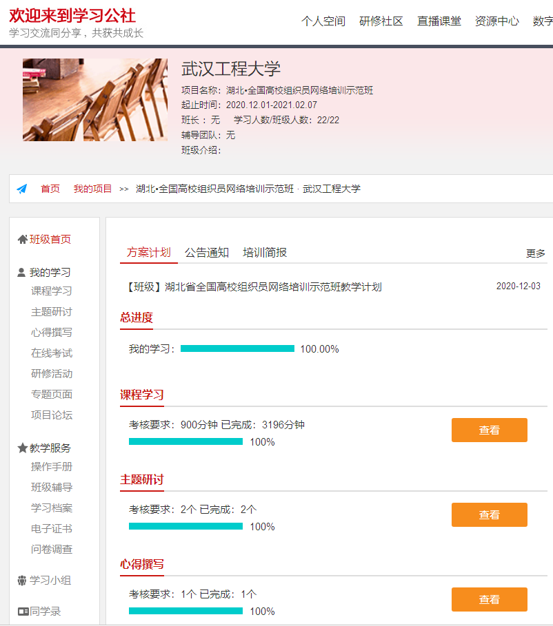本网讯(通讯员 陈恩雨)为深入学习贯彻习近平新时代中国特色社会主义思想,加强基层党组织建设,进一步提高组织员政治素质和业务水平,学校组织全体组织员参加“全国高校组织员网络培训示范班”,经过两个月的学习,全体学员顺利通过考核并结业。此次培训分为课程学习、主题研讨、心得撰写和在线考试四个环节。在课程学习中,不仅有“党性修养提升”、“党章党规学习”和“政治理论教育”等内容,还聚焦组织员的具体工...