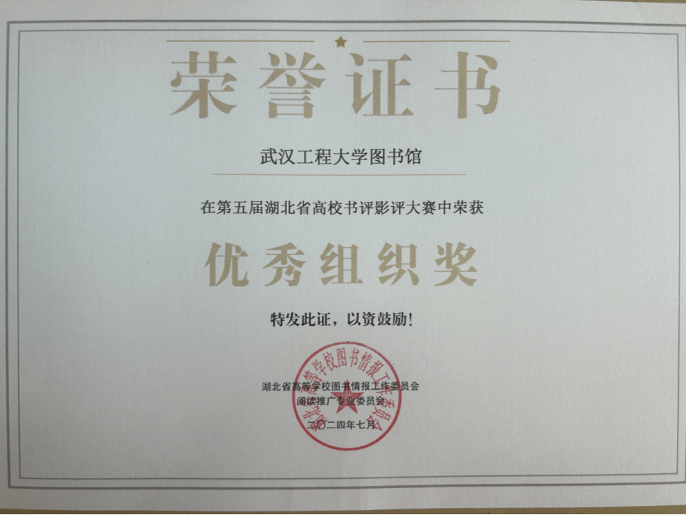 我校图书馆荣获第五届湖北省高校书评影评大赛优秀组织奖